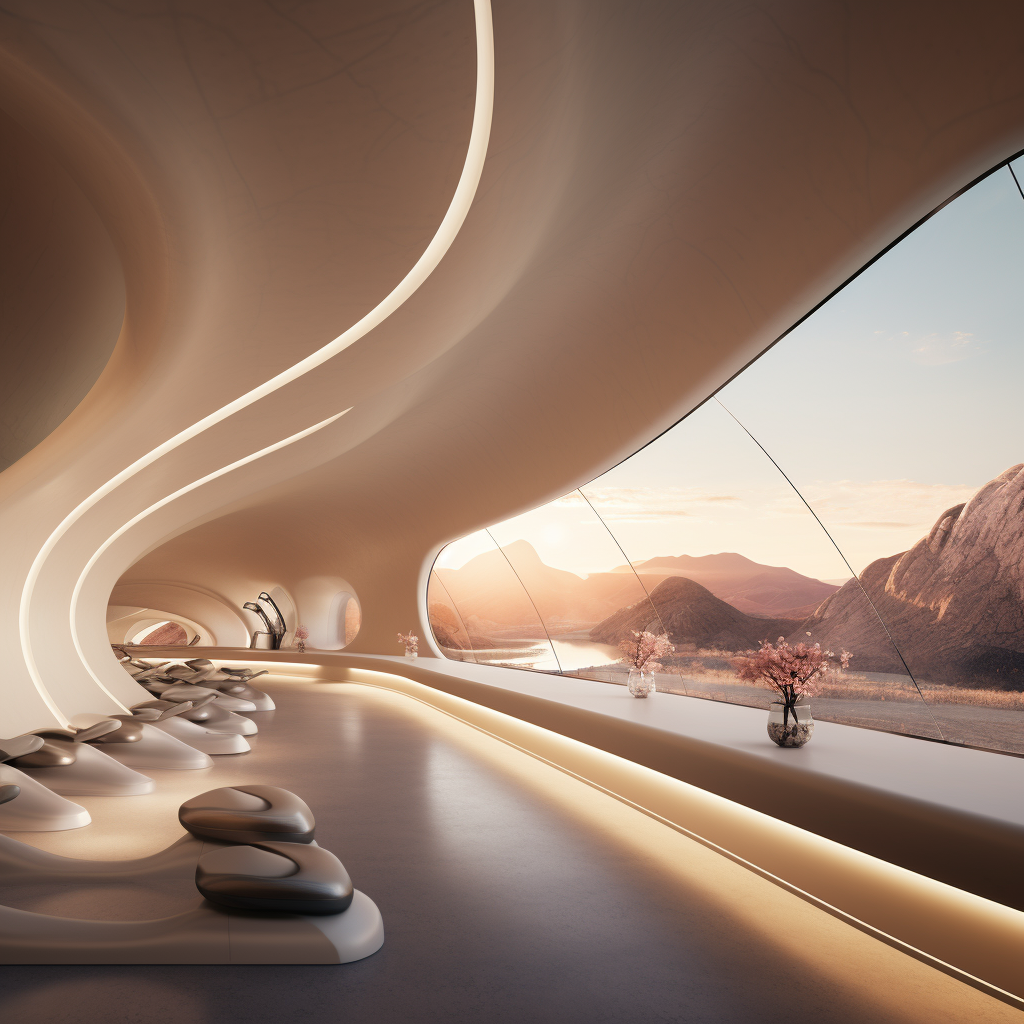 Step into the future with this mesmerizing interior space, where innovation meets elegance. Elevate your workout experience in this awe-inspiring gym space, where the future meets artistry. Aero dynamic design influence shines through, creating a training space like no other, where innovation and architecture unite to inspire your fitness journey.